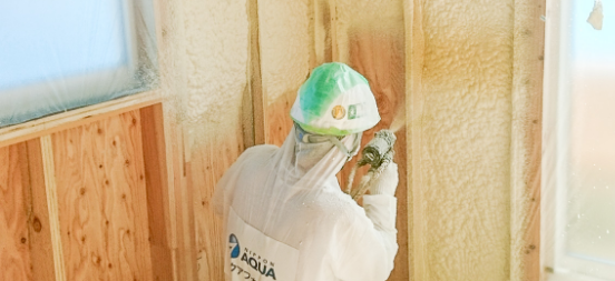 環境にやさしく気密性の高い断熱材「アクアフォーム」を提供します。